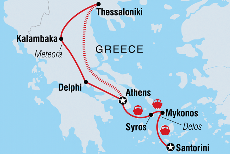 Intrepid has a great two week package that splits evenly between the mainland and the islands. The 'Best of Greece' tour might be a good blend of both.